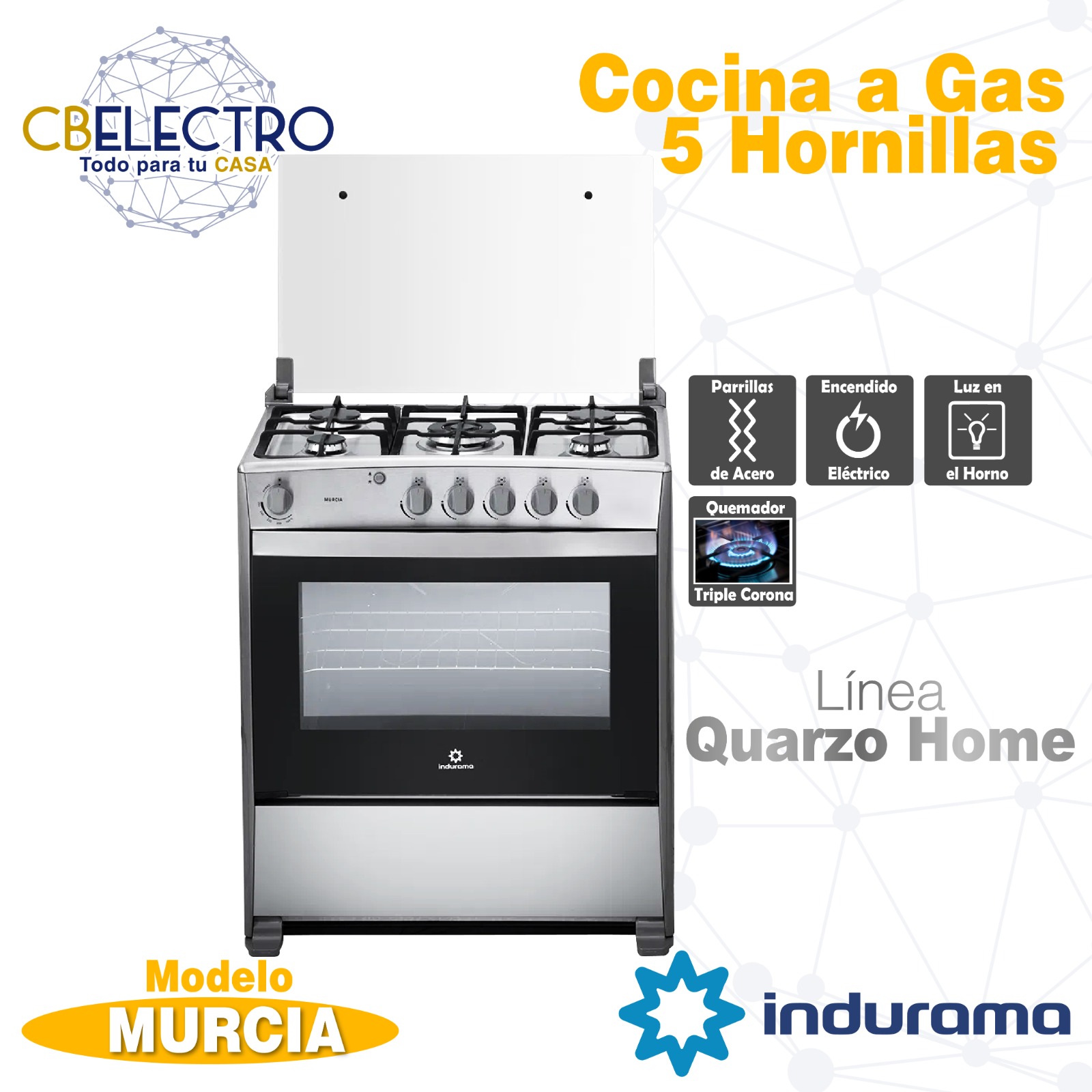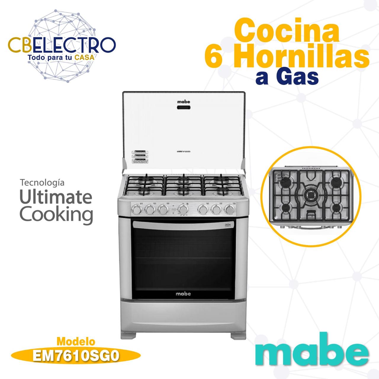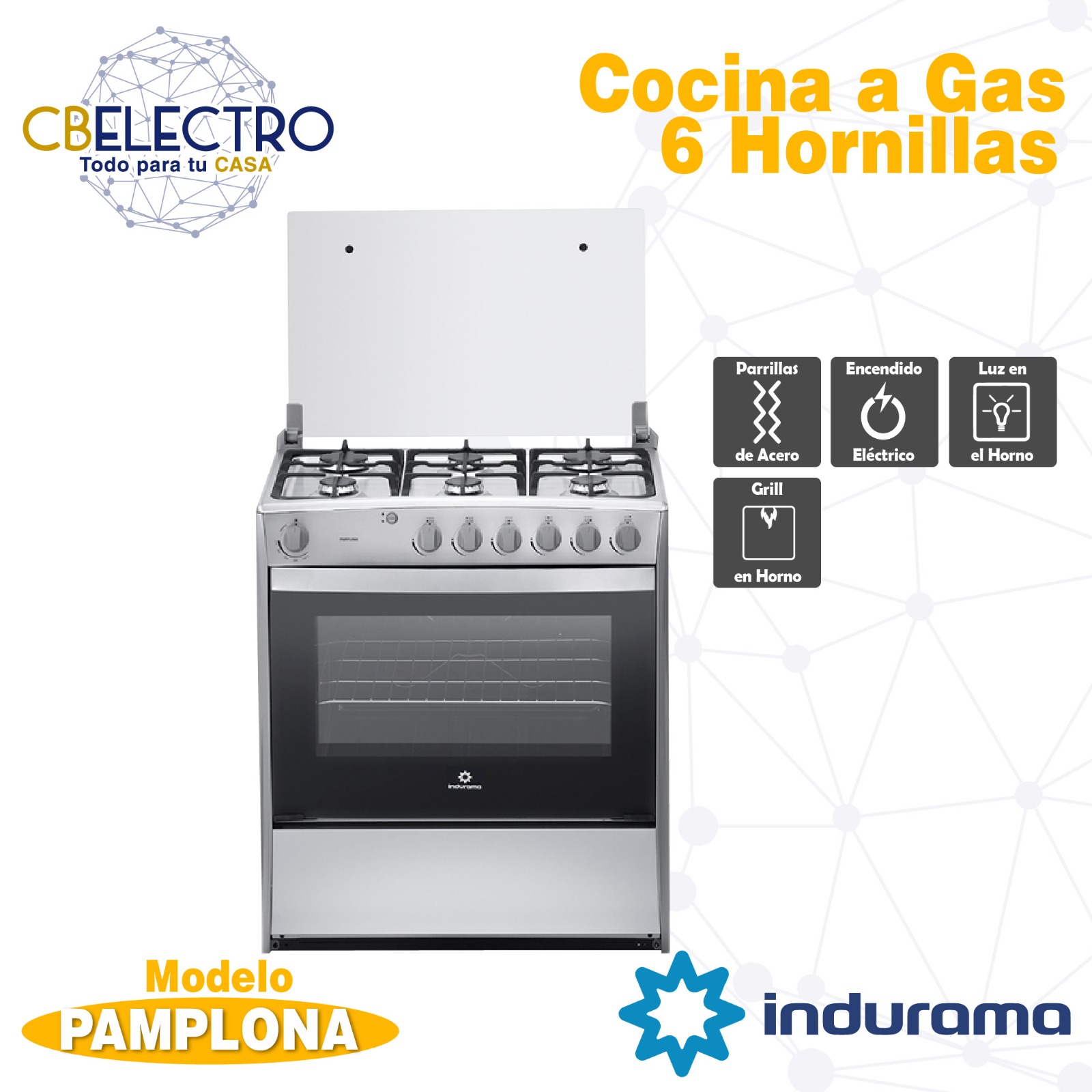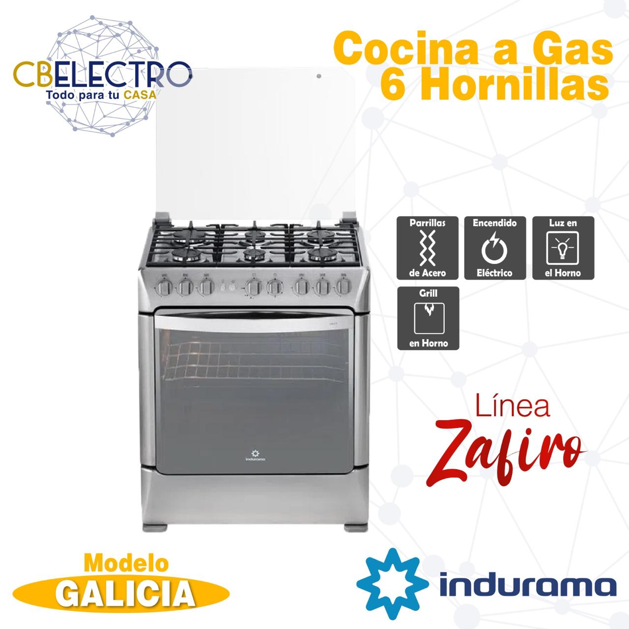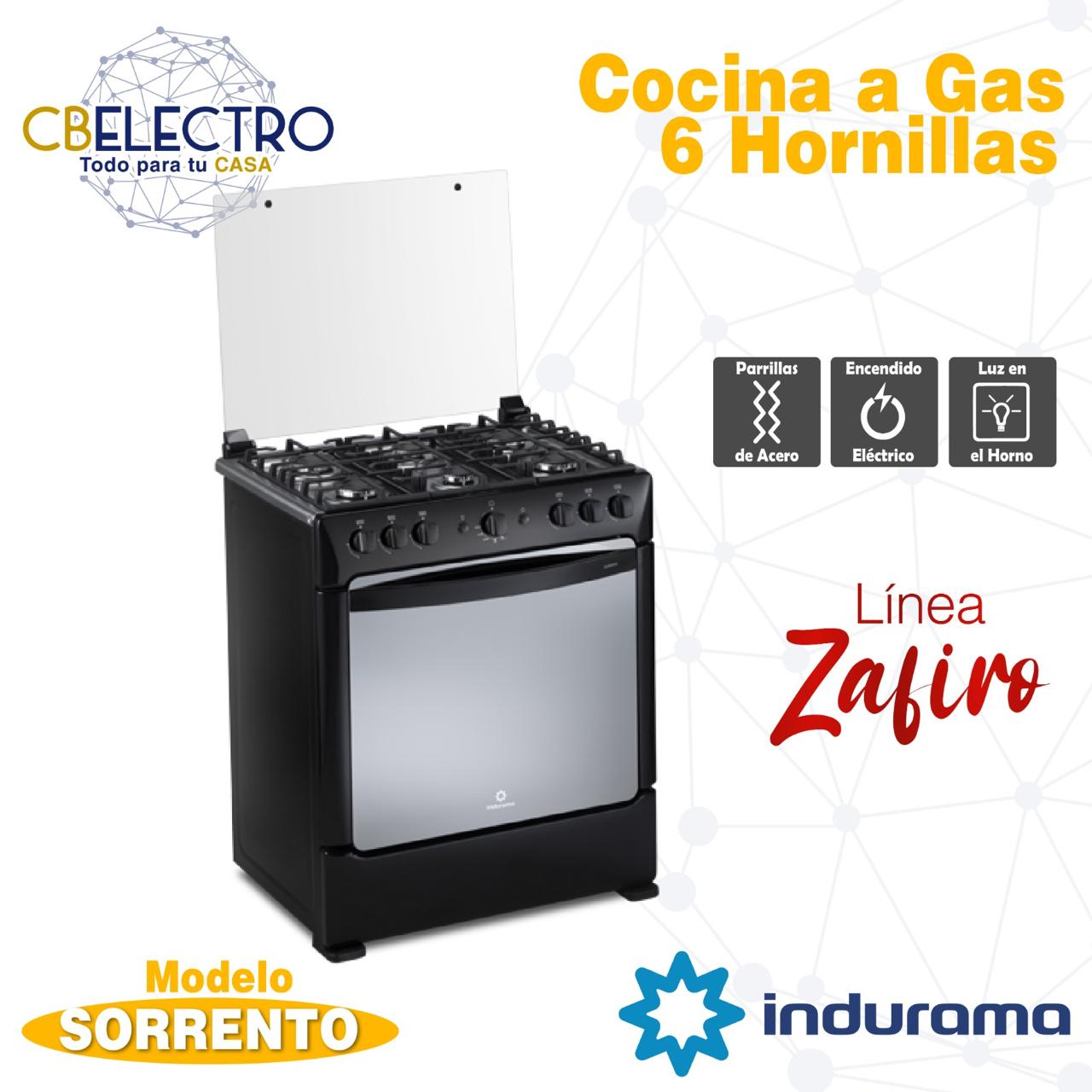 COCINA A GAS INDURAMA SORRENTO 6 QUEMADORES