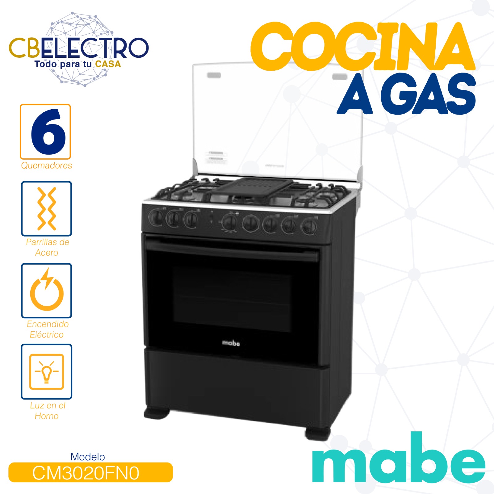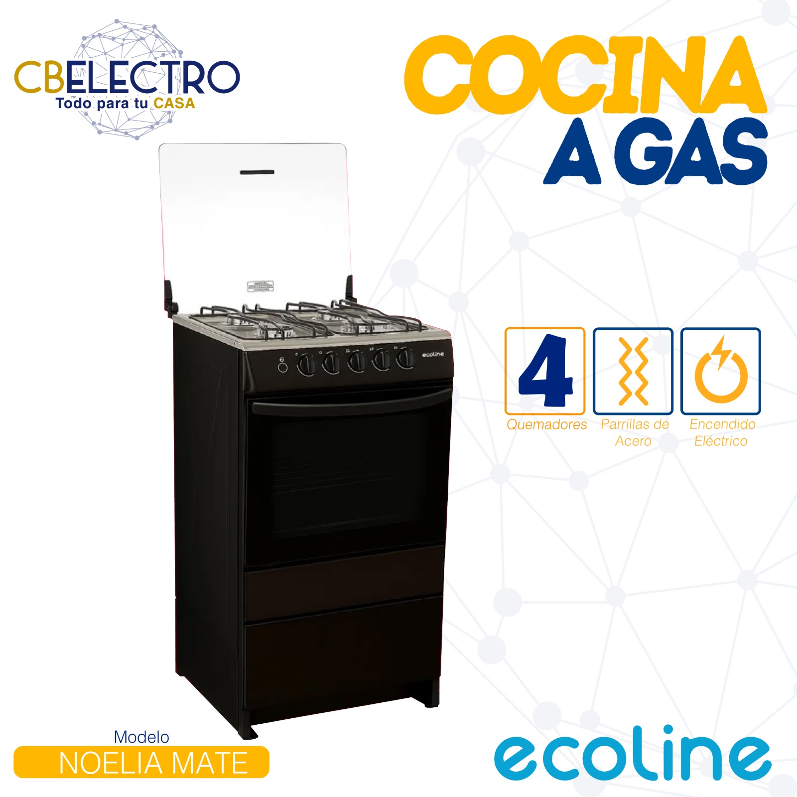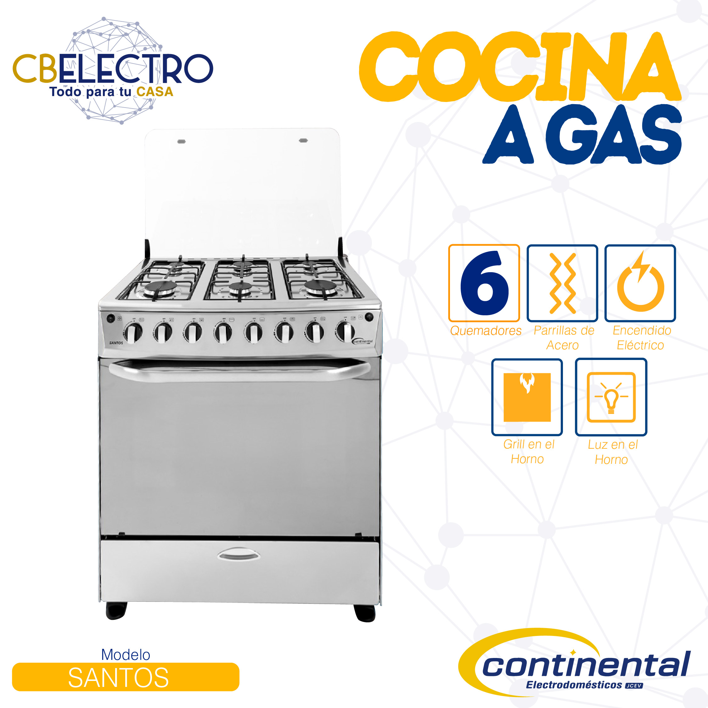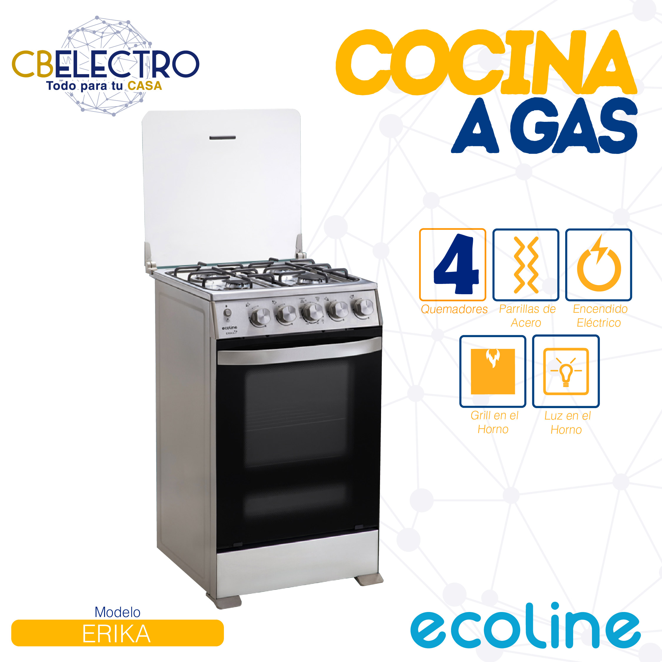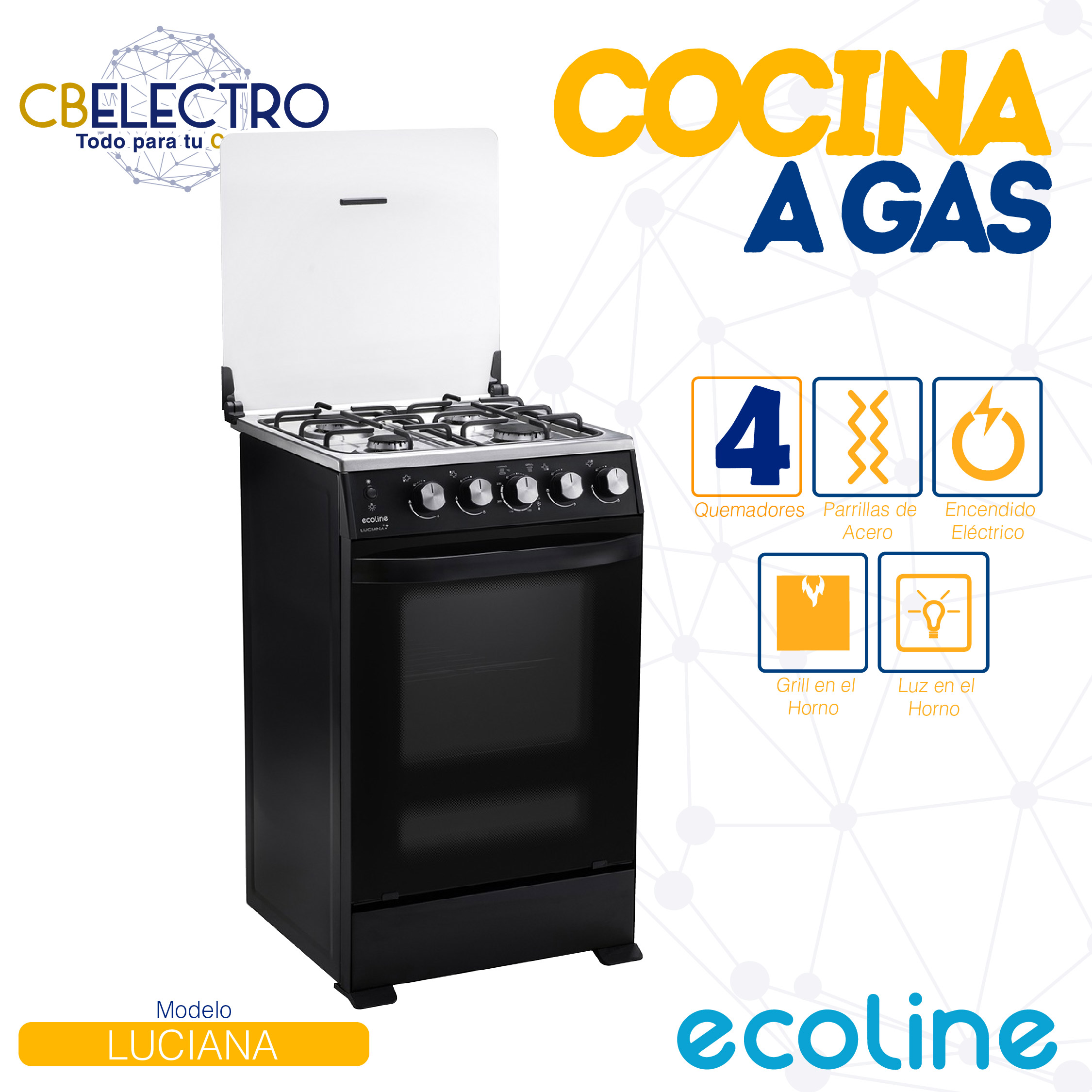 • Encendido electrónico por pulsante en quemadores y horno